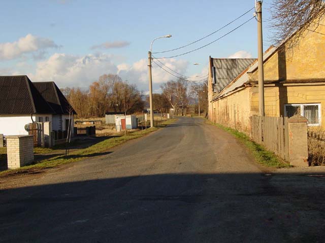 Příjezdová cesta do Všehrd kolem budovy obecního úřadu